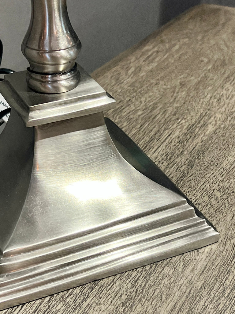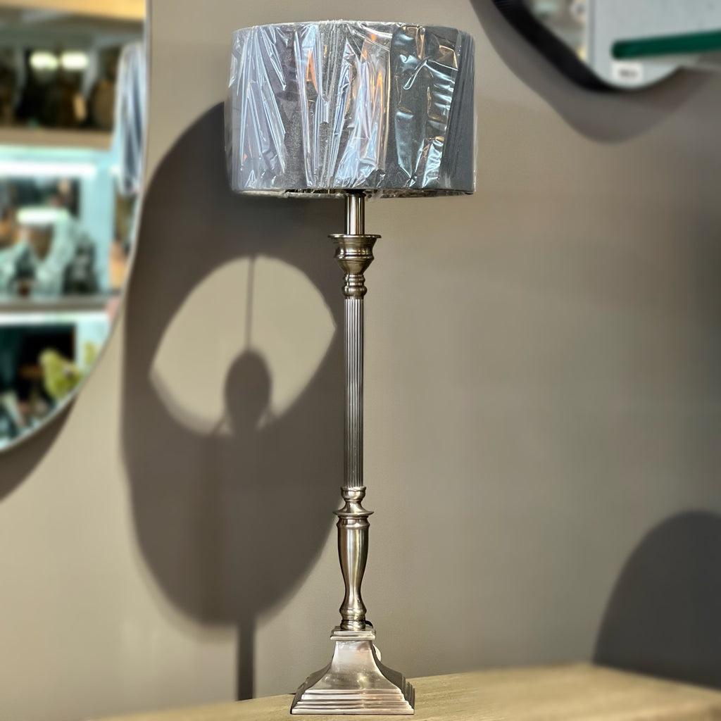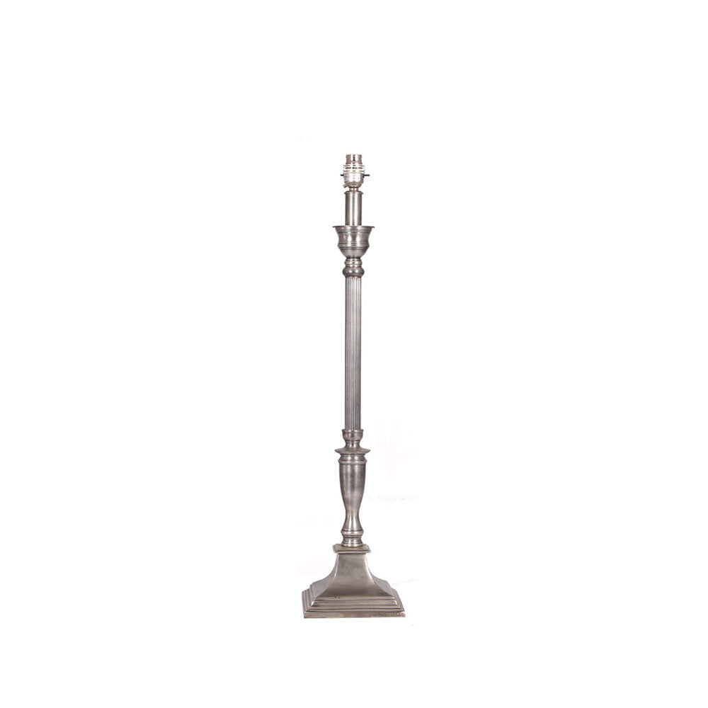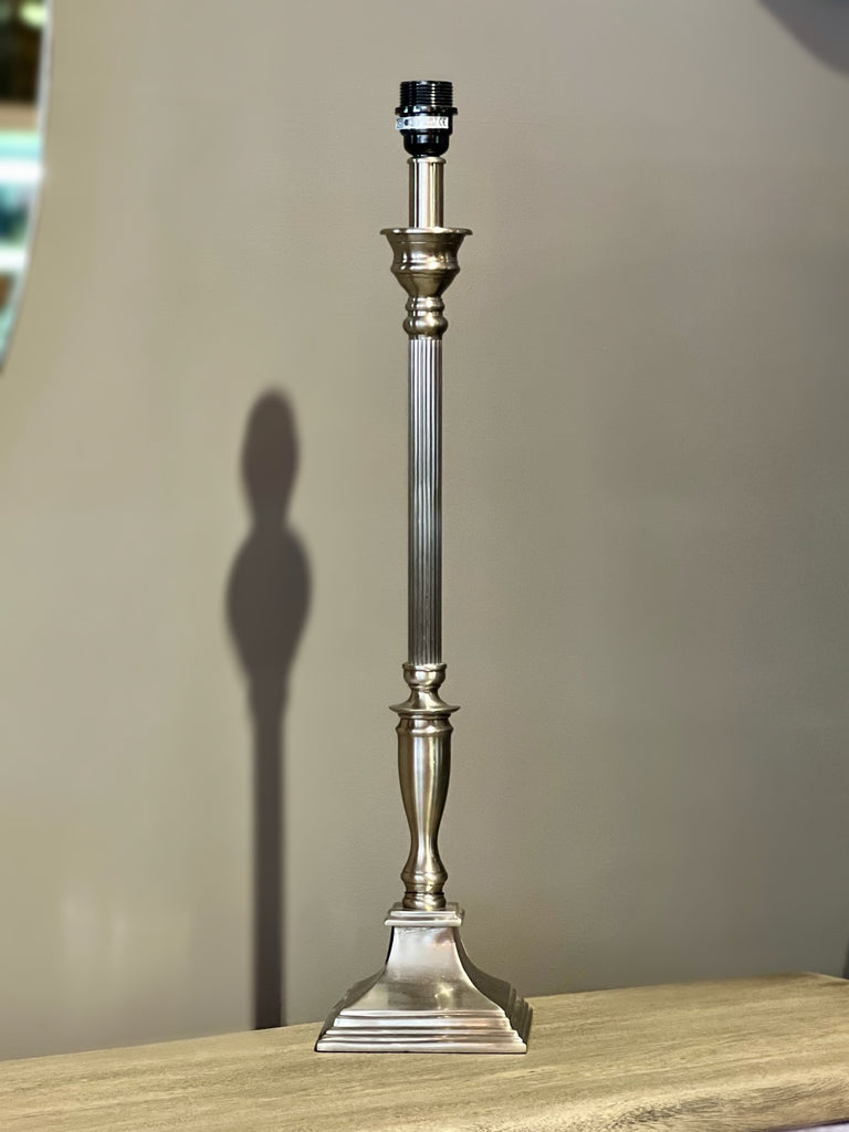 Traditionally styled, this antique silver lamp base with ribbed detail on the column, will add a hint of colonial to your look. Recommended lampshade size: 35cm diameter (sold separately)