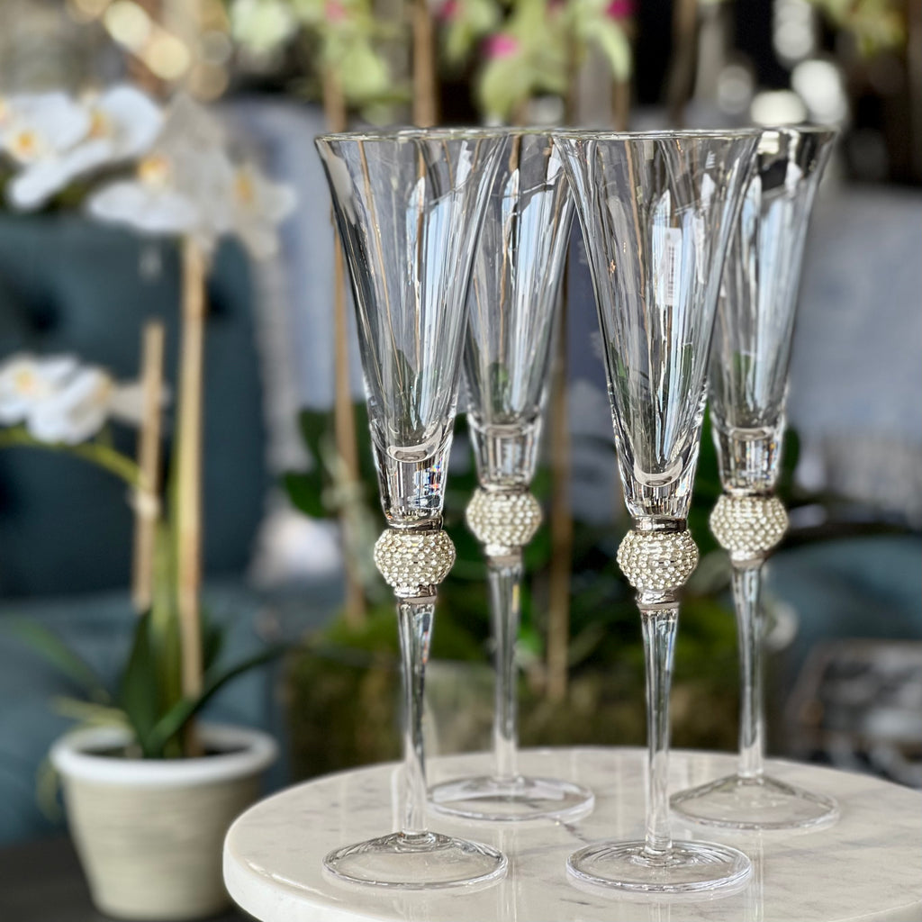 • Material: These flutes are made with exceptional craftsmanship, featuring a delicate silver diamante embellishment that captures the essence of elegance.