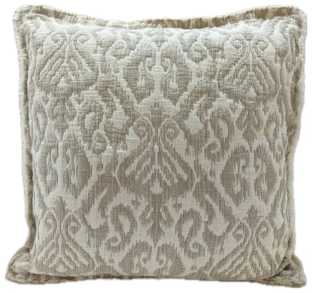 A beautifully woven jacquard cushion featuring a subtle Ikat‑inspired pattern in calming natural tones. Its soft texture and neutral palette bring gentle depth and an effortless, organic elegance to any interior.