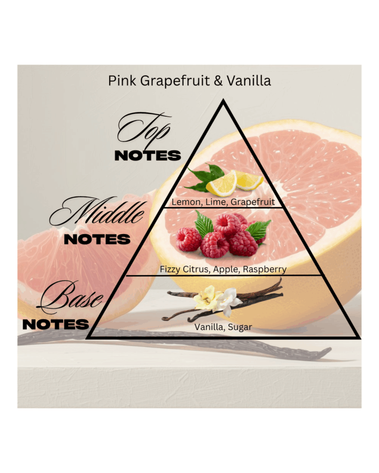 A mouth-tingling blend with top notes of fizzy lemon, lime, and grapefruit, layered over a heart of zesty citrus, a hint of apple, and sweet raspberry, all resting on a base of creamy vanilla and sugar.
